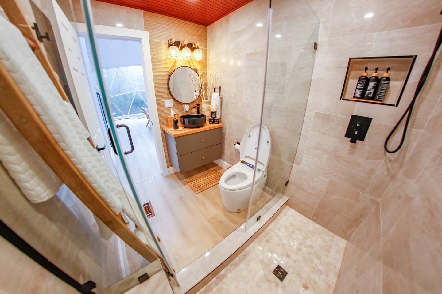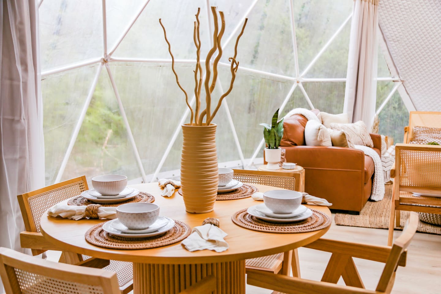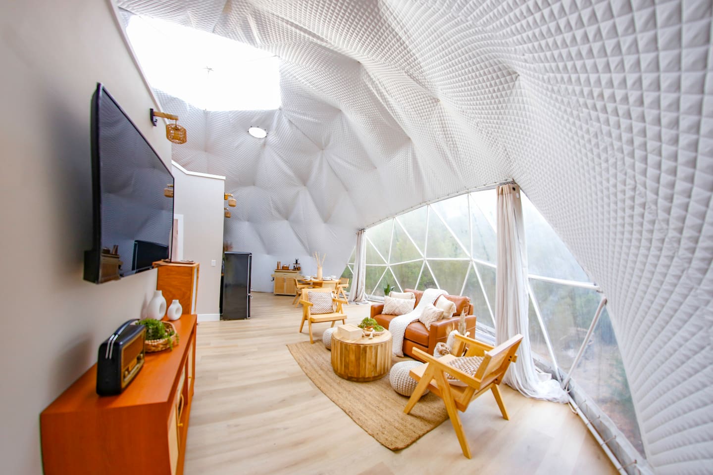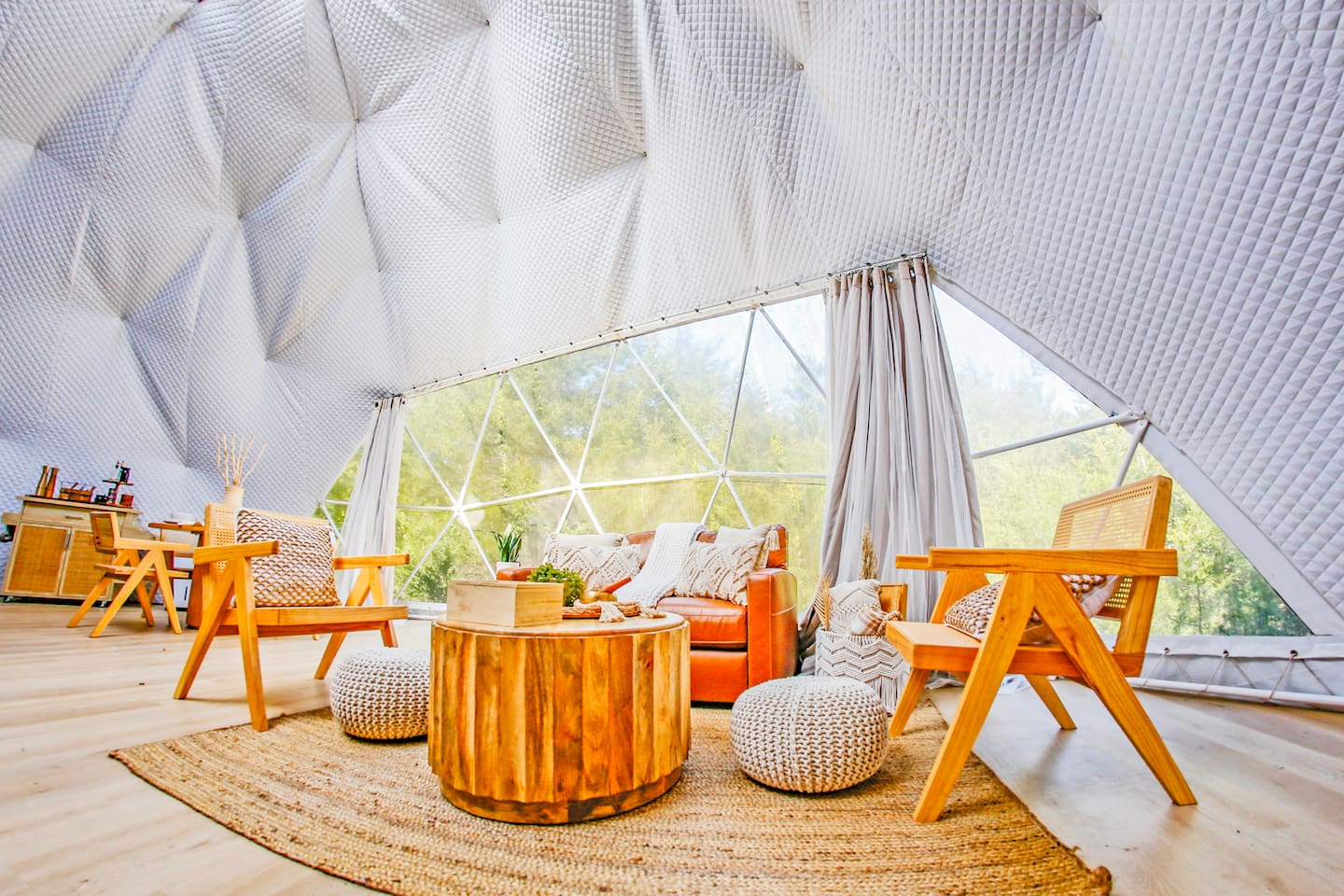 Disappear into the forest. Return to yourself. The Bali Dome sits on 15 private acres of East Texas juniper and pine forest. No neighbors. No shared spaces. No noise beyond wind in the trees and birdsong. Climate-controlled, solid flooring, hotel-level comfort throughout. This isn’t camping. It’s a full luxury reset wrapped in nature. Wake Up Here Morning light filters through the retractable skylight above your bed. Twenty-foot ceilings stretch overhead. Panoramic 18ft bay window facing nothing but trees and stillness. Start the Keurig. Take your coffee outside. The hot tub is still warm from last night. The hammock is waiting. There’s nowhere to be. That’s the point. The Space One of the largest luxury domes in Texas at over twice the typical glamping size. Two private bedrooms with cloud-soft bedding. Spa bathroom with floor-to-ceiling marble, rainfall shower, and Japanese smart bidet. Powerful 5-ton A/C because this is Texas and comfort matters. Full indoor kitchen with retro fridge, luxury dishwasher, air-fryer oven, and washer/dryer. Moroccan zellige tile. Exposed wood beams. Bali-inspired details throughout. Fast WiFi when you want it. Silence when you don’t. The Outdoors Private hot tub under open sky. 400 sq ft patio with teak dining table, deep-cushion sofa set, and premium cooler. Second lounge area with hammock, egg chair, Adirondacks, and Solo Stove fire pit. Full outdoor kitchen with oversized BBQ grill. 300 feet of softly lit string lights leading to your private patio. Disc golf when you feel like moving. Most guests don’t. Details That Quietly Impress Spa slippers, vanity kits, and dental kits on arrival. Elegant table settings with quality plates and glassware. Spa-grade towels and premium linens throughout. Everything refreshed and staged before you walk in. Perfect For Romantic escapes—anniversaries, proposals, or just “we needed this” Girls’ weekends with no agenda Small families wanting nature without roughing it Solo travelers ready to recharge Creators—every angle here is intentional Good to Know You’re in a real forest. Expect dark skies full of stars and the occasional curious bug. That’s the tradeoff for true privacy and nature. Terrain is natural in places. The pond is unfenced. Keep kids close. After rain, stick to the gravel drive.