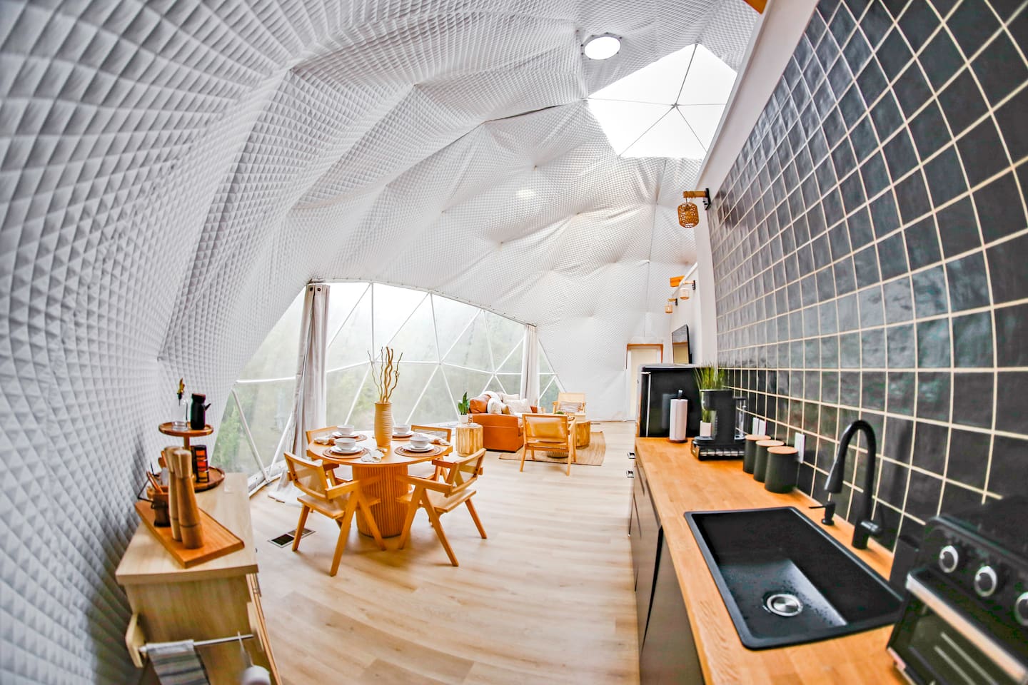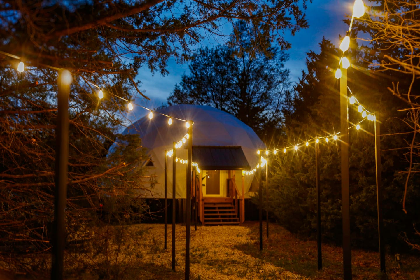 This is a quiet, rural forest setting designed for privacy and immersion in nature. Dark skies, fresh air, and natural surroundings are part of the experience. Because of the environment, you may occasionally notice wildlife or insects outdoors. The dome is thoroughly cleaned and prepared before every stay, but in a forest setting, the occasional bug can still find its way inside. To keep the space comfortable, please avoid leaving food or trash outdoors. Cooking is designed to be part of the outdoor experience. A fully equipped outdoor kitchen and oversized BBQ grill are provided. There is no indoor stovetop. Please remain on the gravel driveway. Off-path driving can result in getting stuck, especially after rain. Families are welcome. Due to natural terrain and unfenced water features, children should be supervised at all times.