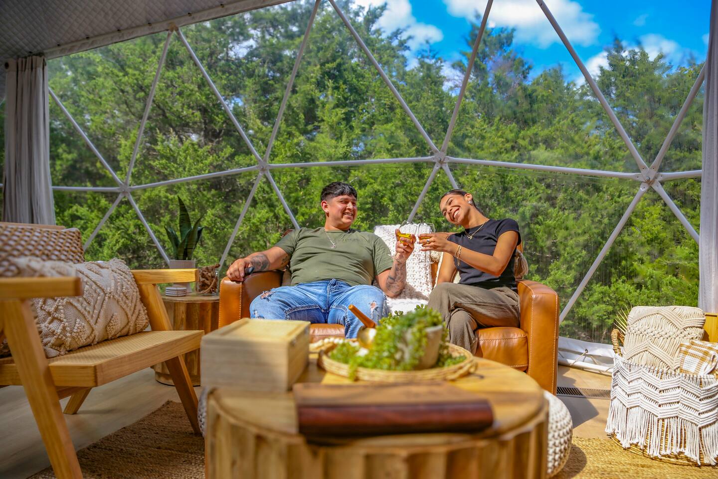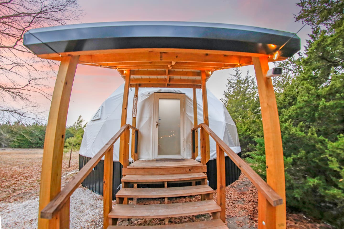 Designed for couples who want total privacy, quiet, and something genuinely different. This romantic luxury dome is tucked away in the trees just outside Dallas, blending modern comfort with immersive nature. No shared spaces. No neighbors. Just you, the forest, and your own private hot tub under the stars. One of the most loved domes in Texas. A perfect place to unplug, slow down, and let the outside world fade away.