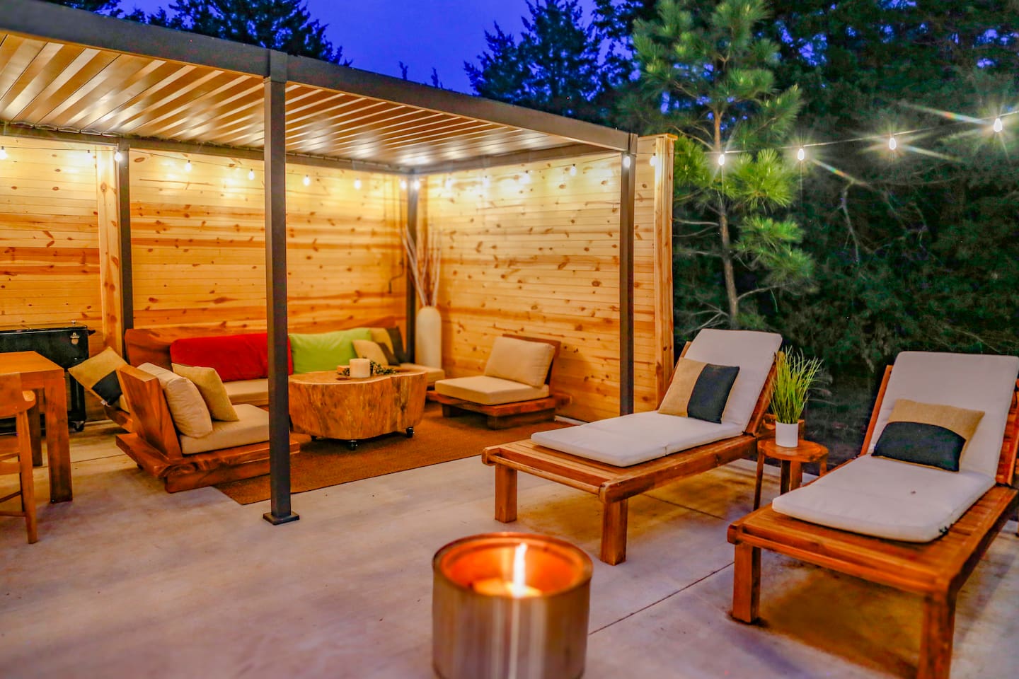 Guests have full access to the entire 15-acre property, including walking trails, the pond, and disc golf. The Bali Dome, private patio, hot tub, and all outdoor amenities are exclusively yours during your stay. This is a working property, so light maintenance may occasionally occur on-site. Any crew presence is brief, professional, and kept well away from your private space.